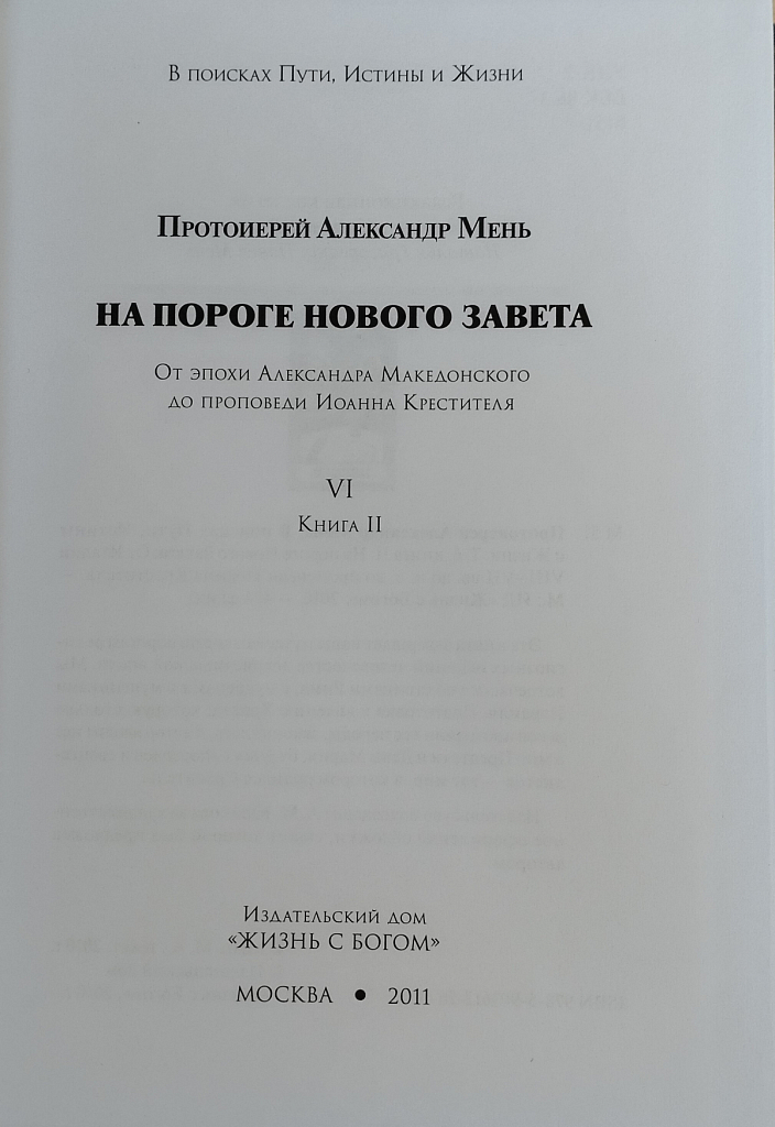 В поисках Пути, Истины и Жизни. Т. 6, Книга 2: На пороге Нового Завета: От Италии VIII - VII вв. до н. э. до проповеди Иоанна Крестителя. –
