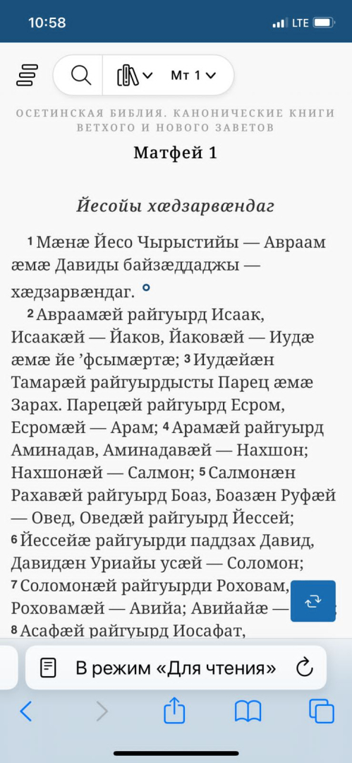Российское Библейское Общество подготовило электронную версию Библии, переведенной на осетинский язык. Осетинская Библия. Канонические книги Ветхого и Нового Заветов