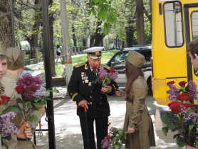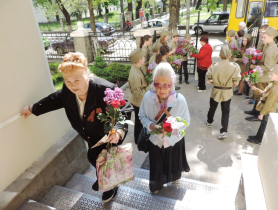 По благословению Митрополита Симферопольского и Крымского Лазаря в епархиальном управлении прошли торжественные мероприятия по случаю 70-летия Победы в Великой Отечественной войне. Главными гостями церемонии стали уважаемые ветераны. У дверей епархии с улыбками их встречали православные следопыты-разведчики Петропавловского кафедрального собора, у каждого в руках были розы и сирень, которые они дарили долгожданным гостям. Вручив цветы и георгиевские ленточки, ребята проводили ветеранов в актовый зал Таврической духовной семинарии, где Митрополит Симферопольский и Крымский Лазарь совершил в память о погибших в годы Великой Отечественной войны заупокойную литию. По окончании богослужения Владыка обратился к ним со словами глубокой благодарности за их героический подвиг, даровавший нам жизнь и свободу.