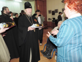 После возложения цветов и минуты молчания ветераны были приглашены на праздничный концерт, подготовленный для них студентами Таврической духовной семинарии, ансамблем «Петропавловская песня» и православными следопытами- разведчиками Петропавловского кафедрального собора. В заключение была сделана памятная фотография. Митрополит Лазарь еще раз поздравил всех с великим праздником, выразил надежду, что и на следующий год состоится такая радостная для него встреча и вручил ветеранам памятные подарки, а также книги Святое Евангелие и Псалтирь, полученные от Российского Библейского Общества.